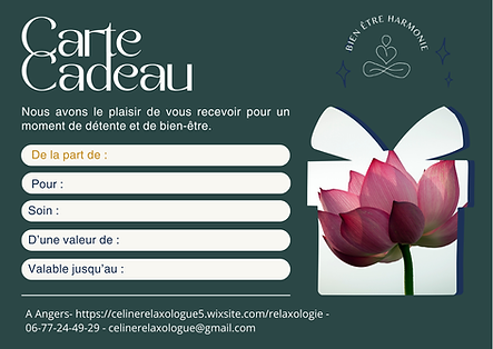 Offrez un moment de détente à vos proches avec une carte cadeau pour nos massages, séances de relaxologie ou ateliers bien-être.